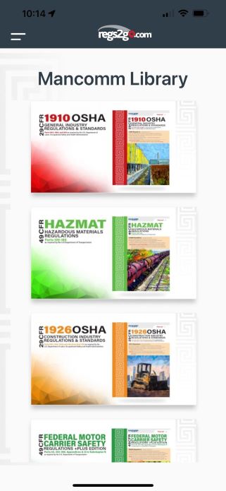 Regs2Go Mobile brings the renowned Mancomm regulations manuals right to your mobile device. With this user-friendly mobile app, you can access safety regulations as they appear in the printed books, giving you a familiar and authentic reading experience.